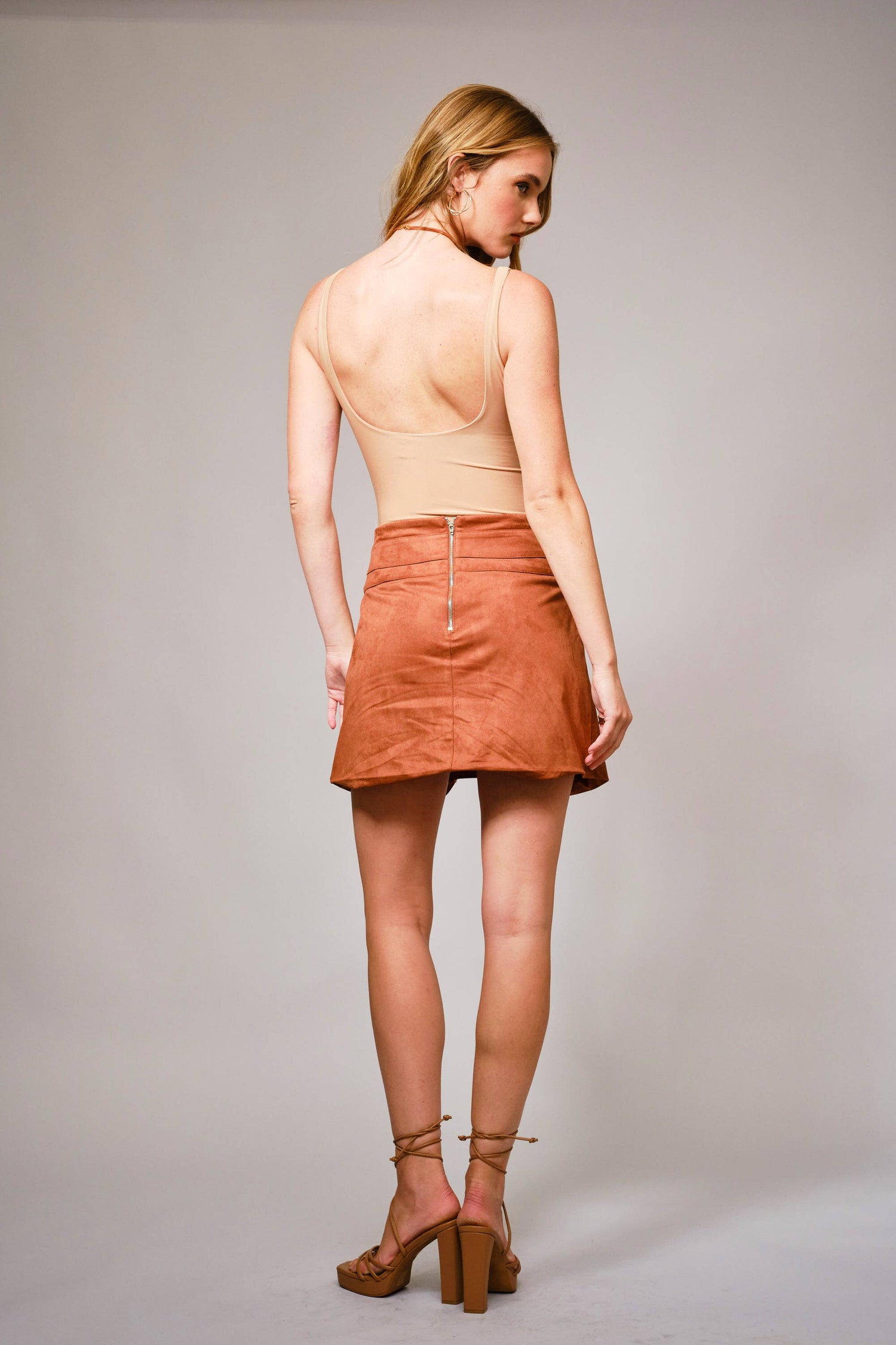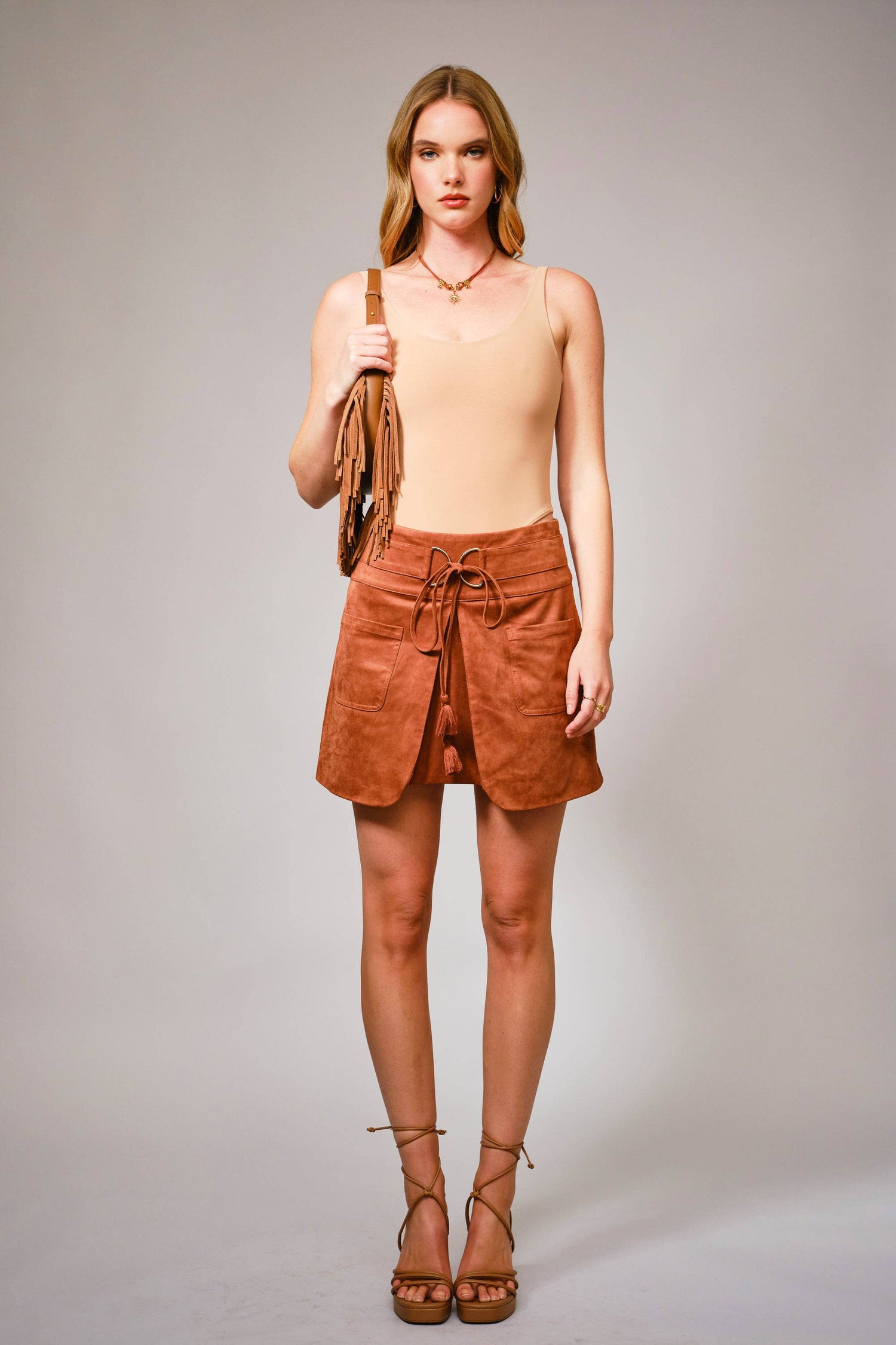 Suede D Ring Tassel Tie Mini Skirt