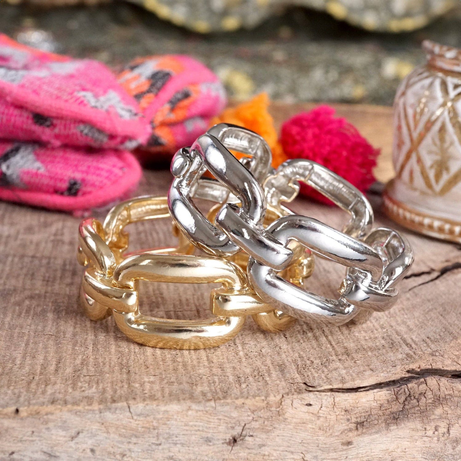 Chunky Chain Statement Stretchy Bangle Bracelet in gold or silver tone