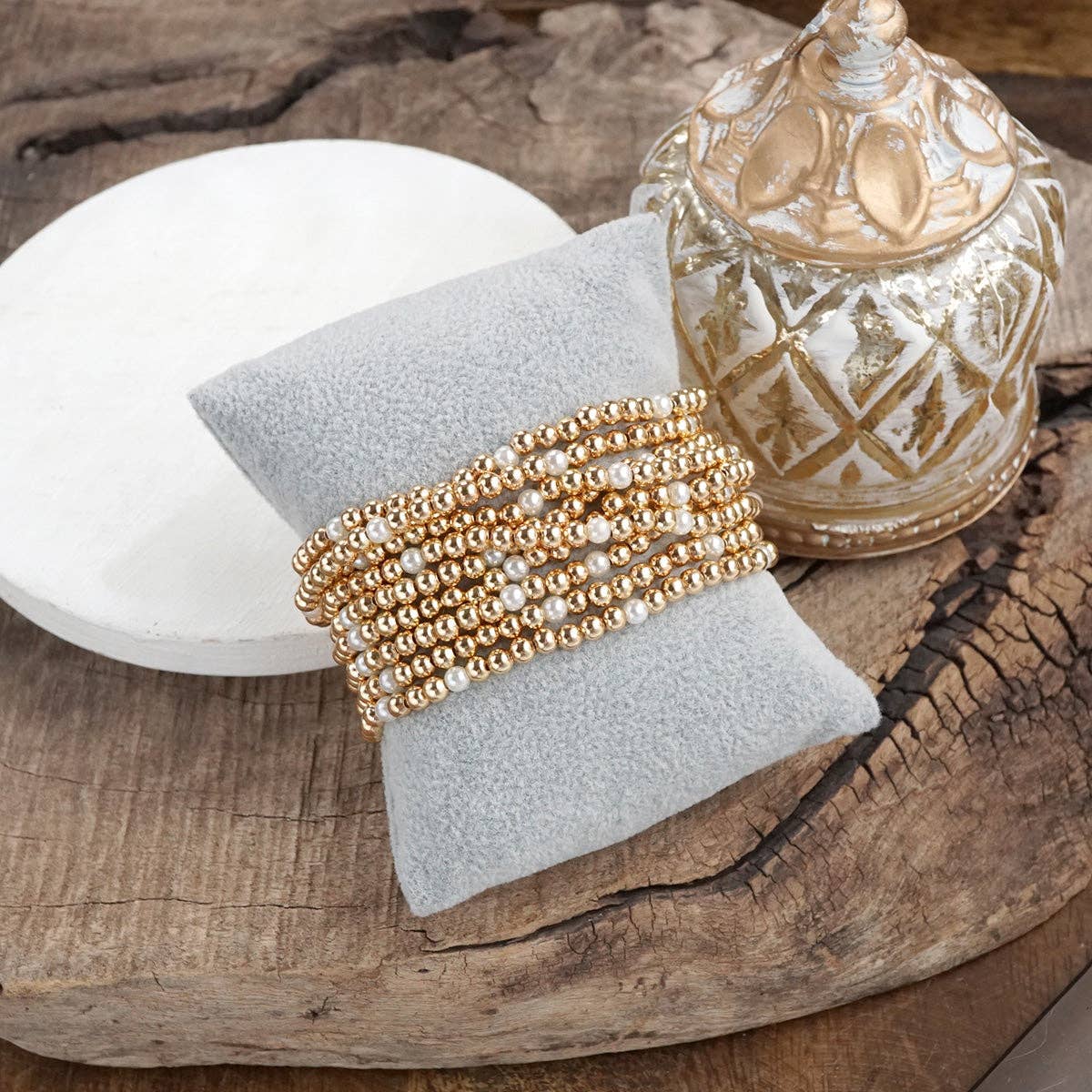 Classic Gold and Pearls Stretchy Bracelet Set – Set of 9