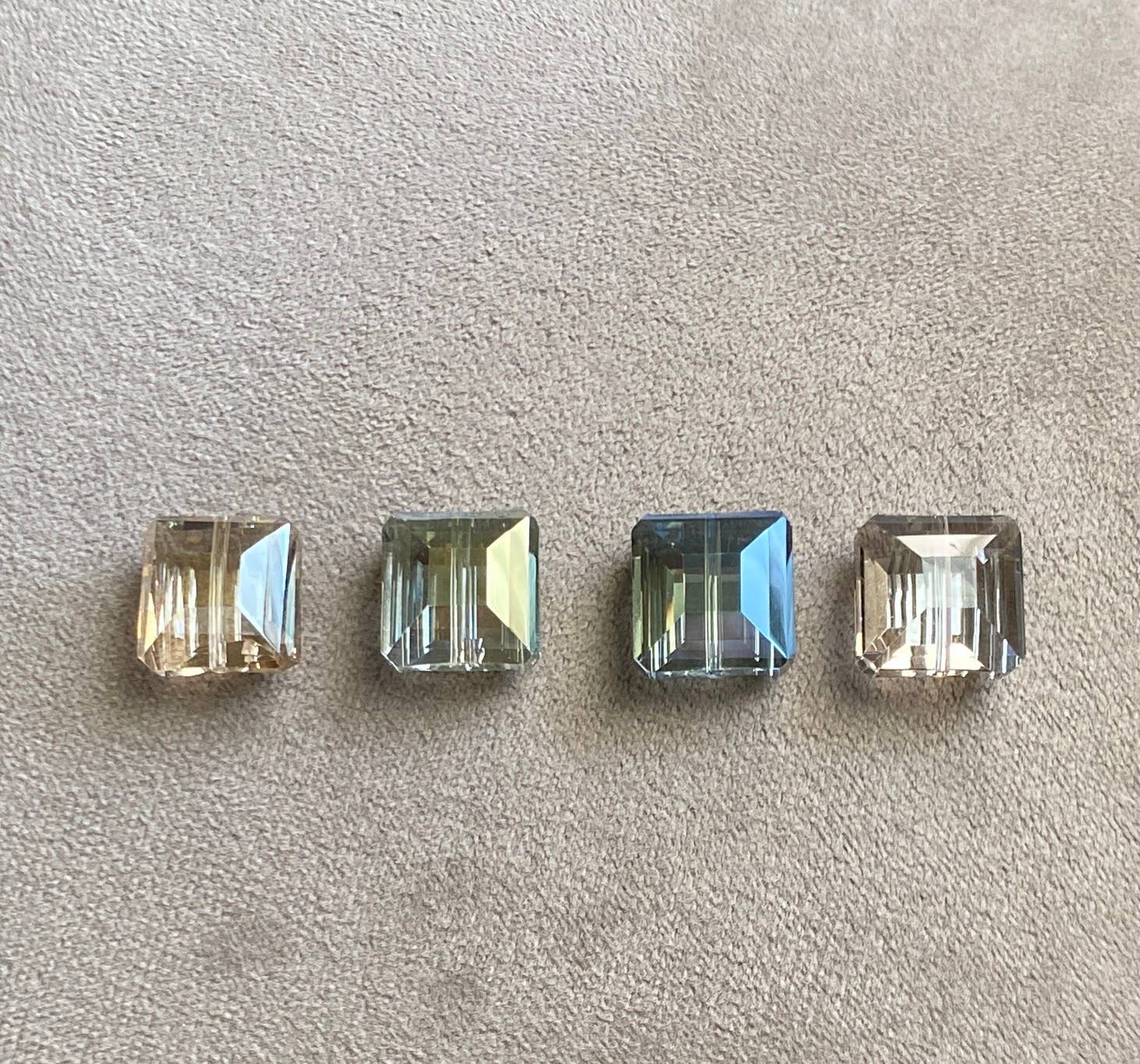 14mm x 14mm square champagne crystal Earrings. Simple, perfect to wear to an elegant evening out or with jeans and a t-shirt, these earrings will fit any occasion. They are wire wrapped for security, style and clean , finished look. 1' long. Available in silver or gold plated metal. Color stone availbale are Champagne, Olive, Blue, Smoke,