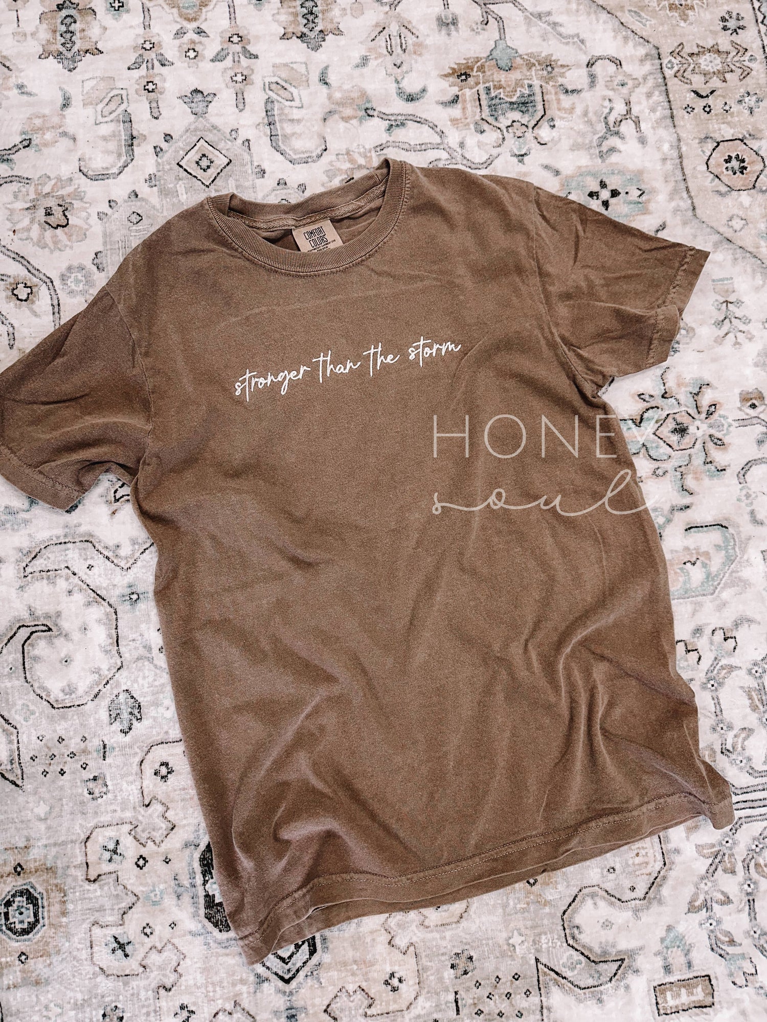Stronger Than The Storm Tee | Screen Transfer Graphic tshirt | Christian apparel Scripture | Bible Verse Christian tee