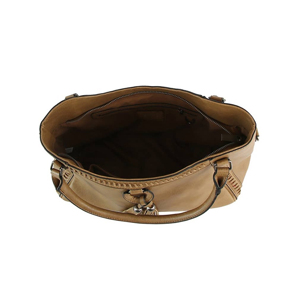 This hand bag introduces a unique fashion tassel stitch satchel style. Experience refined sophistication with this understated yet stylish piece.