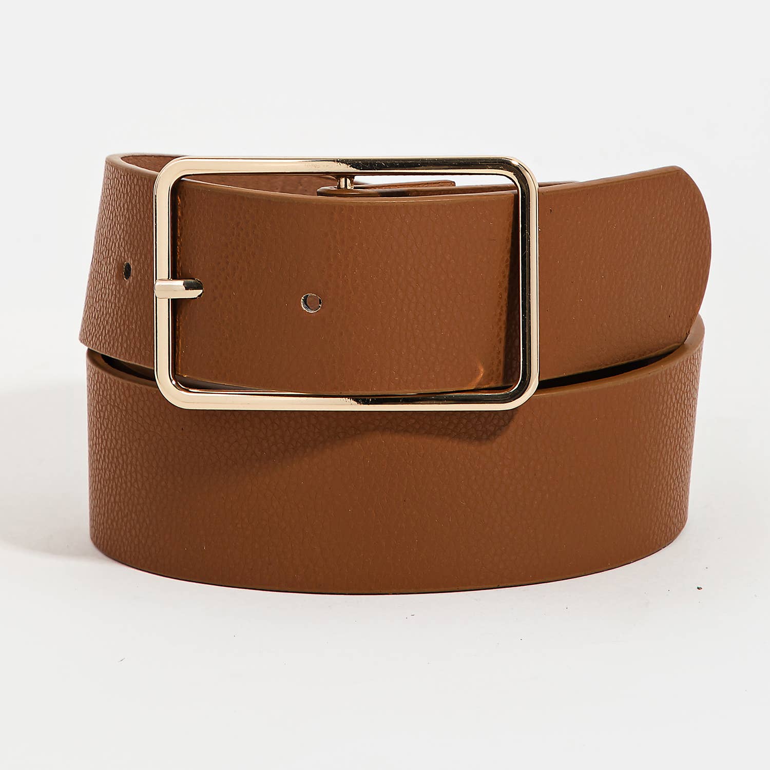 Faux Leather Rectangle Cutout Buckle Fashion Belt