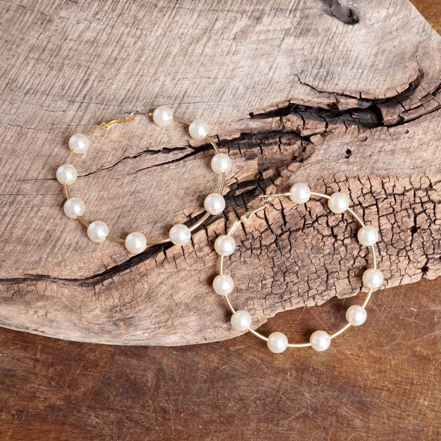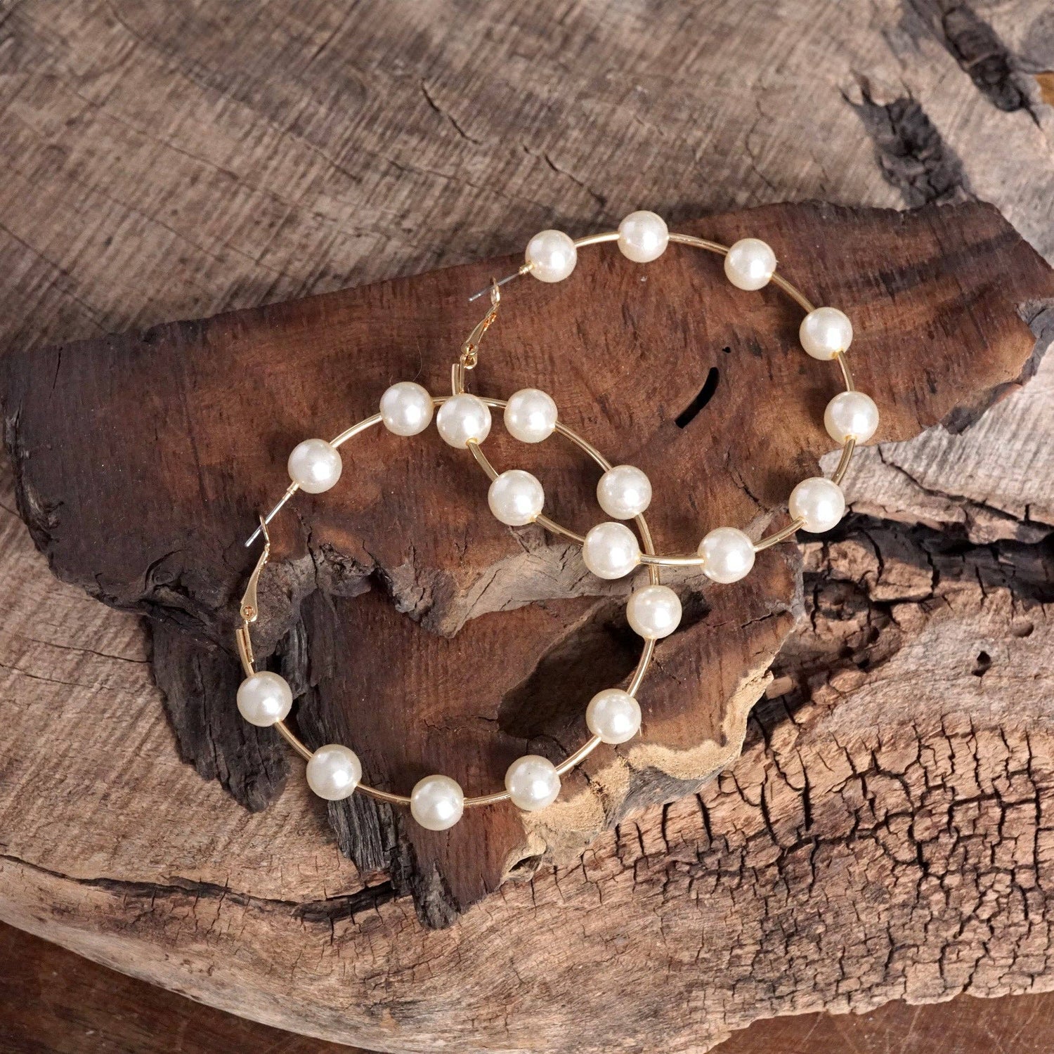 Golden Hoop Earrings with Pearls