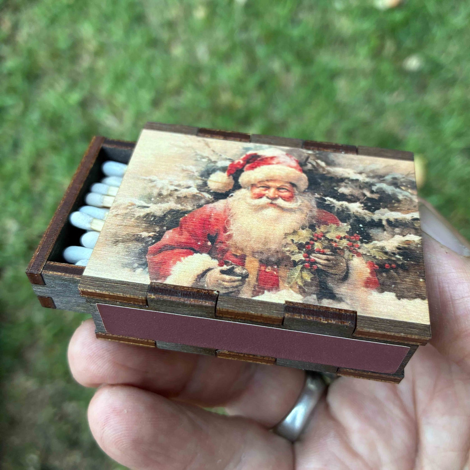 Matches • Christmas Santa Wooden Matchbox •Stocking Stuffers