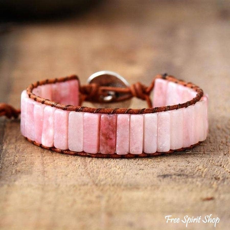 Natural Pink Opal Stone Leather Wrap Bracelet