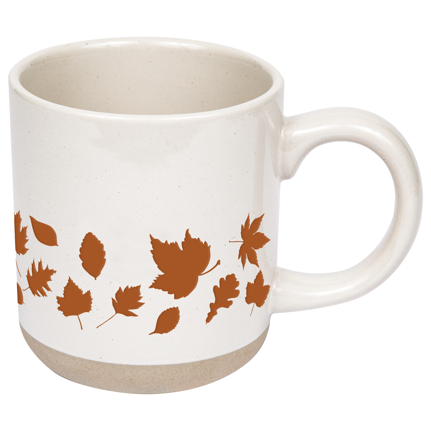 Cozy up to Fall with our Cream Stoneware Mug with Orange Leaves. Featuring a delicate orange leaf pattern around the base, this warm, seasonal design is perfect for coffee, tea, or spiced cider.