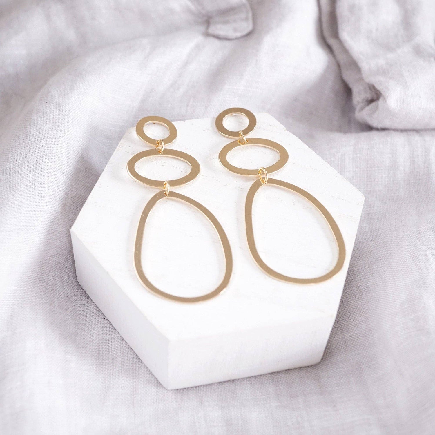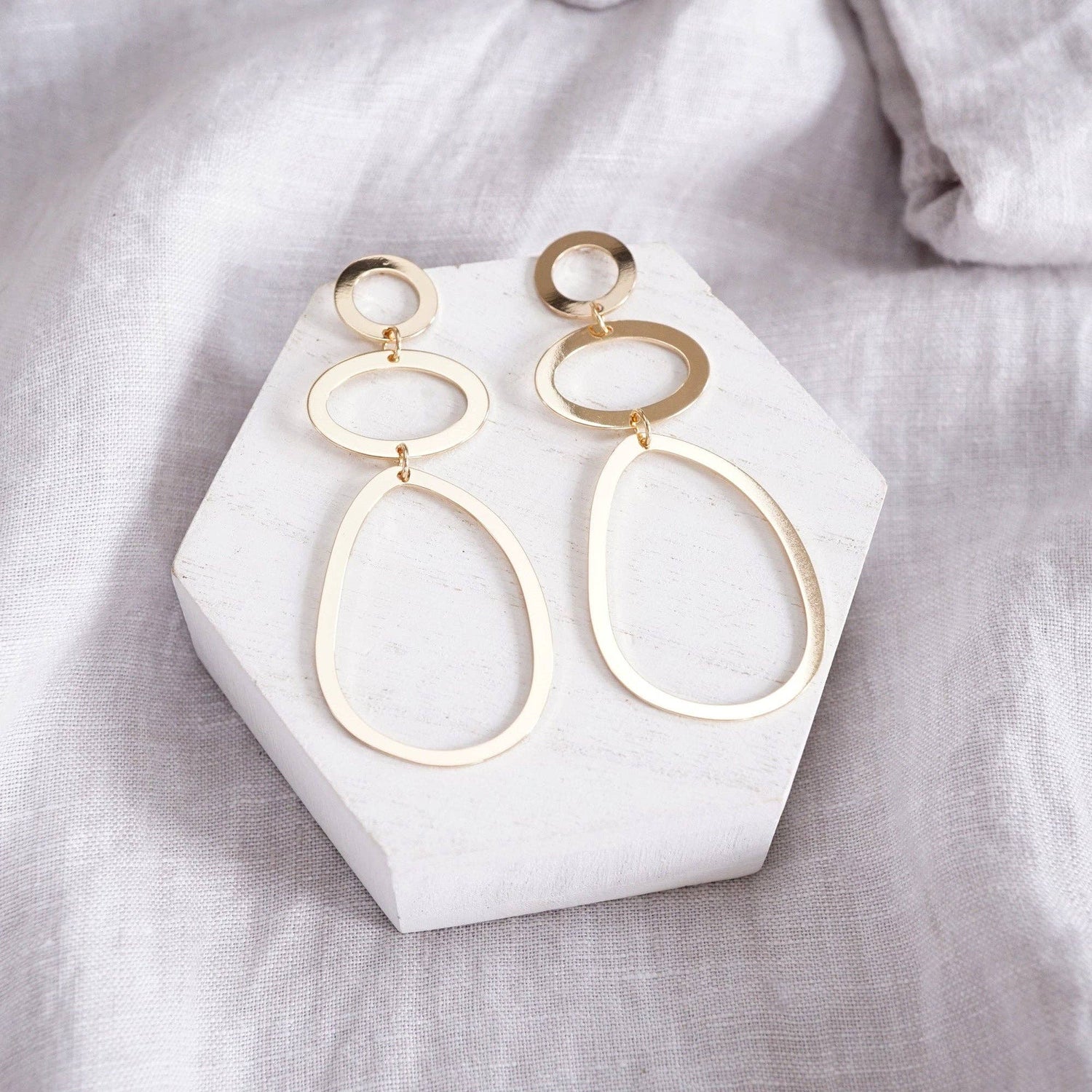 * Three flat pebble-shaped hoops: small, medium, and large