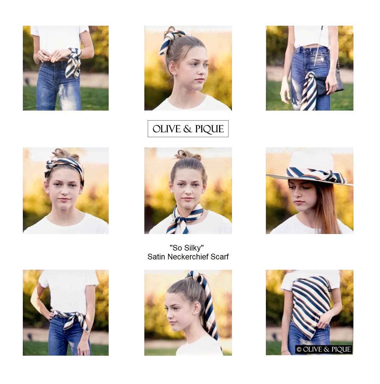 Elevate your look with our chic, silk-like satin neckerchief scarves, the ideal accessory to add a pop of style to any outfit. Whether tied around your neck, styled as a headband, wrapped around your fedora hat, looped around a ponytail, or attached to your handbag, the versatility and value of these scarves are unmatched. Explore our wide range of patterns and colors to find your perfect match!